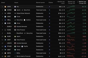 Стейблкоїн USDS @SkyEcosystem, ринкова капіталізація якого зросла на +49,7% за останній місяць.