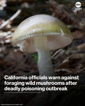 Каліфорнійські чиновники попереджають збирачів після спалаху отруєння, пов'язаного з дикими грибами, внаслідок якого загинув один дорослий і спричинив серйозні пошкодження печінки у кількох пацієнтів, зокрема дітей.
