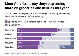 Приблизно 4 з 10 кажуть, що витрачають більше на охорону здоров'я, житло та бензин, ніж минулого року.