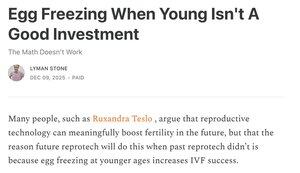 Оскільки жінки частіше затримують пологи, заморожування яйцеклітин просто стає *обов'язковим* біологічно для підтримки базового рівня народжуваності. Йдеться не про те, щоб змусити рівень народжуваності злетіти, а про встановлення підлоги.