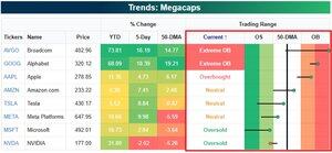 Đây là cái nhìn tổng quan về tám cổ phiếu mega-cap hàng đầu khi chúng ta chuẩn bị cho tháng cuối cùng của năm 2025. Bốn cổ phiếu nằm trên đường trung bình động 50 ngày và bốn cổ phiếu nằm dưới. $AMZN $AAPL $AVGO $GOOGL $NVDA $MSFT $META $TSLA
