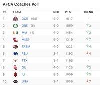 Texas đã rớt từ hạng #7… xuống hạng #7 sau khi thua Ohio State. Không ai quan tâm đến thất bại đó. Họ quan tâm đến Texas, đội bóng đã có thứ hạng cao nhất với 3 trận thua trong cả nước, đã thua hai trận đấu trong hội nghị, bao gồm cả một đội bóng có 8 trận thua mà tệ đến mức chương trình đã sa thải huấn luyện viên giữa mùa.