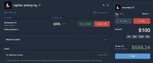 Cố gắng đặt cược vào Lighter không airdrop trước ngày 31 tháng 12 ở mức 17c (tỷ lệ: 5,88).