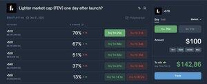 Một memecoin có thể hoàn toàn xảy ra, nhưng với gần 6x số tiền đặt cược vào KHÔNG, thì đáng để đặt một cược nhỏ. Nếu bạn muốn bán bảo hiểm một phần, bạn có thể đặt cược CÓ rằng FDV của Lighter sẽ trên 1b một ngày sau khi ra mắt.