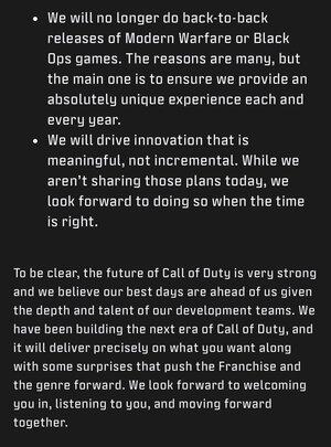 "Để rõ ràng, tương lai của Call of Duty rất mạnh mẽ và chúng tôi tin rằng những ngày tốt nhất của chúng tôi đang ở phía trước"