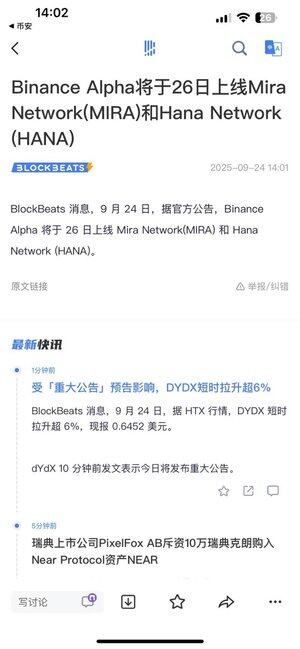 😊@HanaNetwork上Binance Alpha了,看样子是包赚的了! 还有@Mira_Network,我的参与程度无需多言了吧~ 拜托9.26日行情再好一些!