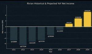 这很简单的数学: 1. 把我所有的钱都投入到 Rivian 股票中(210 万美元) 2. RIVN 股票涨到 200 美元 3. 在 5 年内退休(RIVN 股票价值 2600 万美元) 如果我把钱分散投资,我永远也无法退休