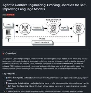 代理上下文工程 论文的代码终于发布了! 我已经为此构建了一个实现(虽然不完全相同),它已经提升了我的代理的性能。 为AI代理演变上下文是个好主意。 官方实现现已发布!