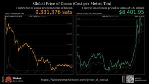 可可的美元价格正在飙升,但在比特币中几乎没有波动。在过去的几年里,它的交易价格一直在每公吨约1000万聪左右。