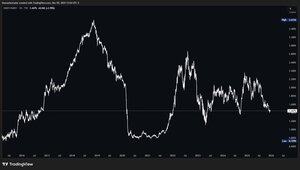 尽管美国正在面临巨大的财政赤字,与欧洲相对温和的赤字相比,美国和欧盟之间的利率差异实际上相当低。如果这一差异不再进一步下降,那么要让DXY从这里降低将会很困难。