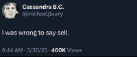 迈克尔·伯里等了将近整整三年,终于回应了那条“卖出”的推文。 我有点喜欢这个“在社交媒体上活跃却不删除推文”的伯里版本…