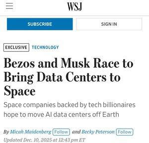 "Travis Beals,一位在轨道数据中心项目上工作的谷歌高管,表示需要10,000颗卫星才能重建一个千瓦数据中心的计算能力,假设每颗卫星为100千瓦。"