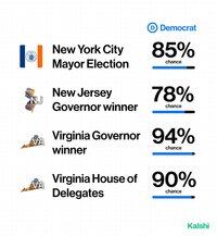 突发:民主党在11月的四场关键选举中获胜的机会为72%。