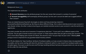 🚢 Walletbeat 工作日志 2025-12-09 1. 推进 PR #288,实施 🛟 账户恢复 和 🪚 账户可恢复性 属性。包含之前的 "密钥处理" 属性。待审核。 2. 安排下周第一次 Walletbeat 贡献者同步会议。