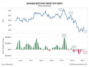 主权财富基金(SWF)并不是聪明的钱。它们是由政府员工管理的巨额资金池。 不如向特朗普寻求投资建议。 - 自10月29日(美联储会议!)以来,IBIT流入的滚动5天总和(底部)没有看到资金流入。SWF买家抵消了。