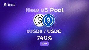 新的流动池现已在 ThalaSwap v3 上线:sUSDe/USDC。 该流动池的激励措施已从 v2 转移到 v3,提供更高的效率和高达 740% 的年化收益率。 v2 流动池现在处于仅可提取模式。 流动性提供者(LP)和质押您的头寸以赚取奖励 ↓