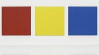 艺术 顶部:翻译的手势,2025 @tylerxhobbs 底部:红黄蓝 III,1966,埃尔斯沃斯·凯利 泰勒的作品 @ArtBasel 通过 @solos_gallery