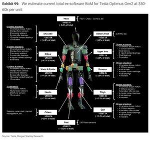 摩根士丹利估计,特斯拉的 $TSLA Optimus Gen 2 每台硬件成本约为 5 万到 6 万美元,软件费用另算。