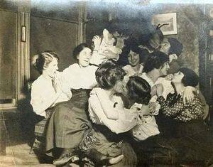 大约在1900年代,一群朋友在房间里玩耍。 查看更多照片: