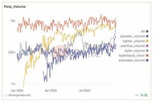 📈 Perp DEX 活动正在加速。 根据 @margaritalucidi1 的说法,@HyperliquidX 仍然是按交易量计算的明确领导者,而 Aster 在短短一周内迅速攀升至第 2 位,在增长和流动性深度方面超越了同行。趋势突显了对链上衍生品日益增长的需求。 #DeFi #PerpDEX #Hyperlioquid #ASTER