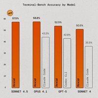 Droid + Sonnet 4.5 本质上与 Droid + Opus 4.1 相当,但便宜 5 倍。 @FactoryAI 的 Droid,采用最新的 Sonnet 模型,已获得领先的 Terminal-Bench 分数 57.5%。