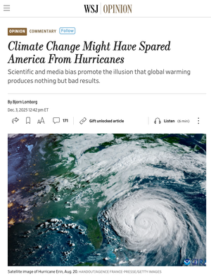 2025年飓风季节平静——美国零次登陆——几乎没有提及,但每场大风暴都是气候厄运的头条“证据” 归因科学不能继续忽视好消息或复杂的消息 我们需要冷静的分析,而不是选择性警报 我今天在《华尔街日报》上的新专栏: (以及这里的档案,标题已被替换: