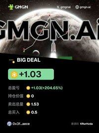 玩赚 #meme 币关键在于工具使用与信息来源 群友使用 GMGN,扫链时发现的 $BIG DEAL 并狙击进场 从 0.5 $BNB ->1.53 $BNB CA:0xeb063ed963c9630621dc651fb24f481fc0c54444 以下是筛选方法视频👇 视频工具链接: 它使用TGbot工具进行的狙击交易: