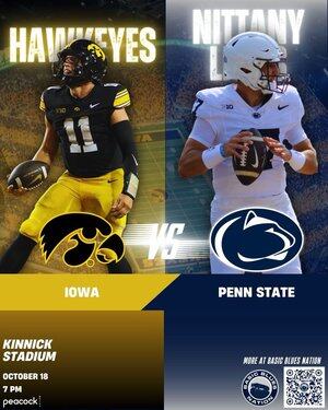 宾州州立大学对爱荷华州的比赛有哪些得分预测? 🕒: 下午7:00 ET 📺: Peacock #WeAre #PennState