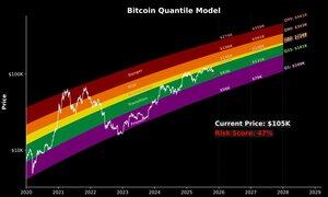 分位数模型更新 当前价格:$89K 风险评分:33% 即将重复在紫绿边界(第33百分位)反弹的相同模式,就像2024年一样。