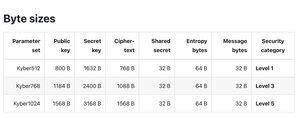 NIST批准了三个级别:Kyber512(级别1)、Kyber768(级别3)和Kyber1024(级别5)。