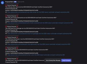 周日举行了一场 NASCAR 比赛。Polymarket 上交易 10,000 美元。丹尼·哈姆林赢了。市场支付。容易。