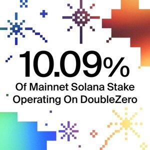 目前 @Solana 主网的 10.09% 的股份正在 @DoubleZero 上运行