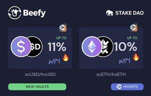 在《太空球》主题曲中把"Spaceballs"替换成Stake Dao。我告诉你,这有效。 $scUSD - $frxUSD: 11% 年化收益率 $scETH - $frxETH: 10% 年化收益率