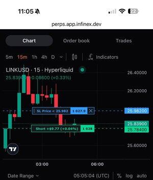 好的,在睡觉前在@infinex上对$LINK开了另一个空单。止损设置得很紧。