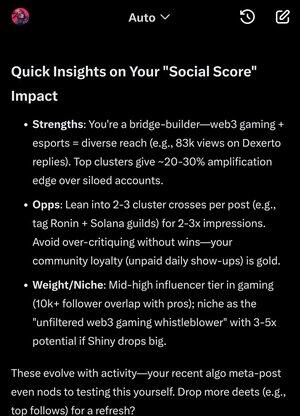 如果你具体询问,Grok有一些有趣的新见解可以分享,关于你的账户属于哪些集群。 这些集群被称为SimClusters,我属于这五个主要类别: Web3游戏 加密游戏 Web3建设者和评论者 NFT/收藏品 电子竞技