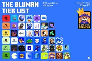 第43天 Bluman 分级列表 🔎 对 @base 上推动文化和基础设施的代币的评估 Bluman 分级列表是一个每日编辑的项目列表,塑造 Base 生态系统的面貌。我们追踪谁在真正创造价值,激励社区,并使区块链更加光明——不仅仅通过技术,而是通过乐趣、表情包和文化影响。 选择标准 要被纳入分级列表,项目必须满足以下基本要求: 🟦代币年龄:自发布以来至少10天 🟦生态系统贡献:新工具、原创想法、文化相关性,或简单地说,执行良好的乐趣 🟦活跃社区:真实的参与和有机增长 市值分级: 低于50万 50万+ 150万+ 500万+ 2500万+ 1亿+ ⚠️ 重要提示:分级列表不是投资建议。它代表了 Bluman 团队基于公开数据和观察到的链上活动的主观意见。 🔊 如果您的代币不在列表中,请随时评论并告诉我们为什么它值得在下次更新中占有一席之地。 @ponchoBASE - Base 代币战第一阶段的获胜者 🏆 @jessepollak,我们感谢您对区块链发展的关键贡献,并请求您支持我们分析 Base 生态系统的努力。 $BLUMAN CA: 0x5fB3F7b165fB86AcB5463E1183281ce181fac696