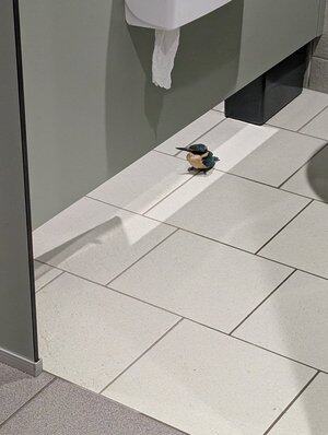 女性洗手间里的翠鸟