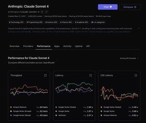 新功能:性能标签 📈 根据时间排名提供者代币的吞吐量和延迟。现在还显示平均端到端延迟。 以下是 DeepSeek V3 排名:
