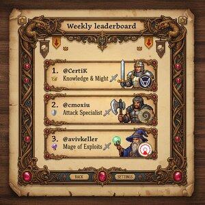 🏆 每周排行榜 来自传奇游戏的怀旧气息 ⚔️ 1️⃣ @CertiK 2️⃣ @wndw000 3️⃣ @aviv_keller 下一个英雄会是谁?