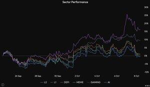 本月的反弹主要由第二层和第一层推动。 表情包、去中心化金融(DeFi)、人工智能币等几乎处于停滞状态,并没有享受到一些主要币种所看到的同样上涨。 我认为这通常是一个健康的现象。如果表情包每次反弹都领先,通常只会导致失望和上涨的失败。