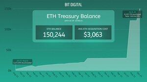 Bit Digital 自 2021 年 6 月以来一直在积累 Ethereum,目前持有超过 150,000 ETH,平均 ETH 收购成本约为 $3,063。 这里是十年 > 这里是一天。