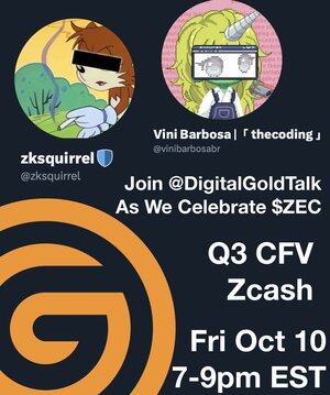 今晚加入我们,一起庆祝 Zcash,和 @zksquirrel 以及 @vinibarbosabr 两位我们最喜欢的嘉宾主持。 东部时间晚上 7 点到 9 点(纽约时间)。不见不散。$ZEC 请分享。
