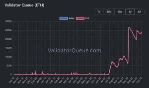 【ETH可能面临大规模卖压?】 退出队列(出金等待)已达到约250万ETH,创下历史最高水平。仅仅几个月前几乎为零的情况发生了巨变。 这意味着许多验证者正在解除质押,退出网络。