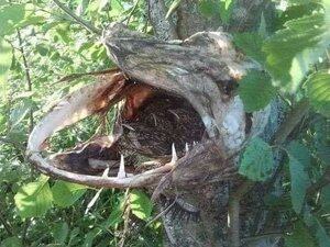 一条梭鱼跳出水面,可能是在追逐猎物,结果卡在了一根树枝上死去。现在,一只鸟在它的嘴里筑了巢。 生活是一个循环。