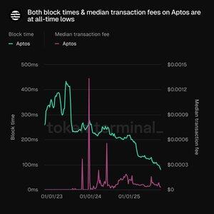 如果你错过了:@Aptos 的区块时间和中位交易费用均处于历史最低水平。