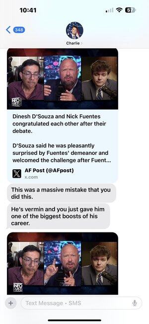 如果查理进行了重大转变,并开始同意尼克·富恩特斯关于犹太人和以色列的观点,那么为什么他在2025年7月2日,也就是他去世前几周,给我发短信称尼克是“害虫”,并强烈反对以任何方式放大他的声音呢?