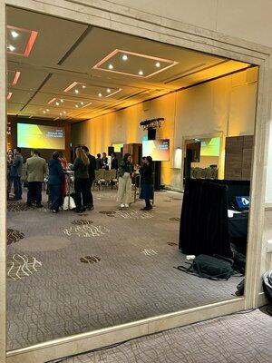 我们昨天活动的酒店有一个巨大的镜子,看起来像是另一个房间。好几个人差点撞上它。真是恶魔般的室内设计。