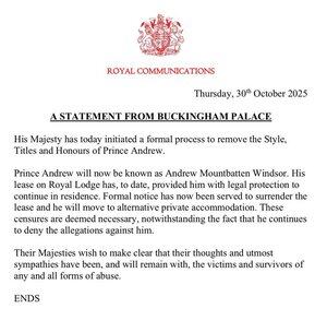突发:安德鲁王子被剥夺“王子”头衔,准备搬离皇家别墅