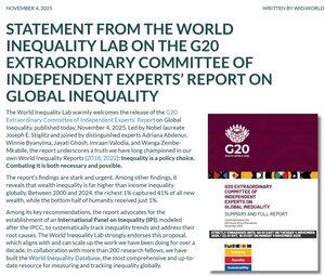 南非总统 @CyrilRamaphosa 决定将不平等置于 G20 议程的核心,这是历史性的。这标志着在通往更大平等的漫长道路上迈出了重要一步。来自全球南方的国家——巴西和南非——近年来率先推动将税收公正和社会公正纳入 G20 议程,这并非巧合。 世界不平等实验室欢迎 @JosephEStiglitz 的报告,并支持其呼吁建立一个全球不平等小组,模式仿效 IPCC。是时候扩大我们在过去 10 年中倡导的工作,以衡量和解决不平等的驱动因素了。 ▶️