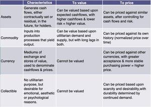 要评估黄金,首先必须确定它在投资连续体中的位置。它不是一种资产,而是一种有限使用的货币,一种有一定用途的商品,但最终,它的价值来自于它作为收藏品的地位。